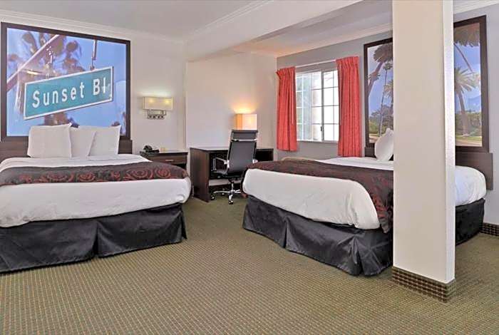 Located on West Sunset Boulevard in Hollywood, the setting puts guests in easy reach of city highlights, about from the downtown core. On-site conveniences include free parking, free WiFi, and a 24-hour front desk, with non-smoking rooms ensuring comfortable stays. The property also features elements like a balcony and bathtub among its listed amenities, adding small touches to the overall experience.